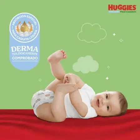 Por eso, los Huggies Flexi Comfort Edición Limitada cuentan con absorción mejorada para caquita líquida, ayudando a mantener la piel del bebé protegida.